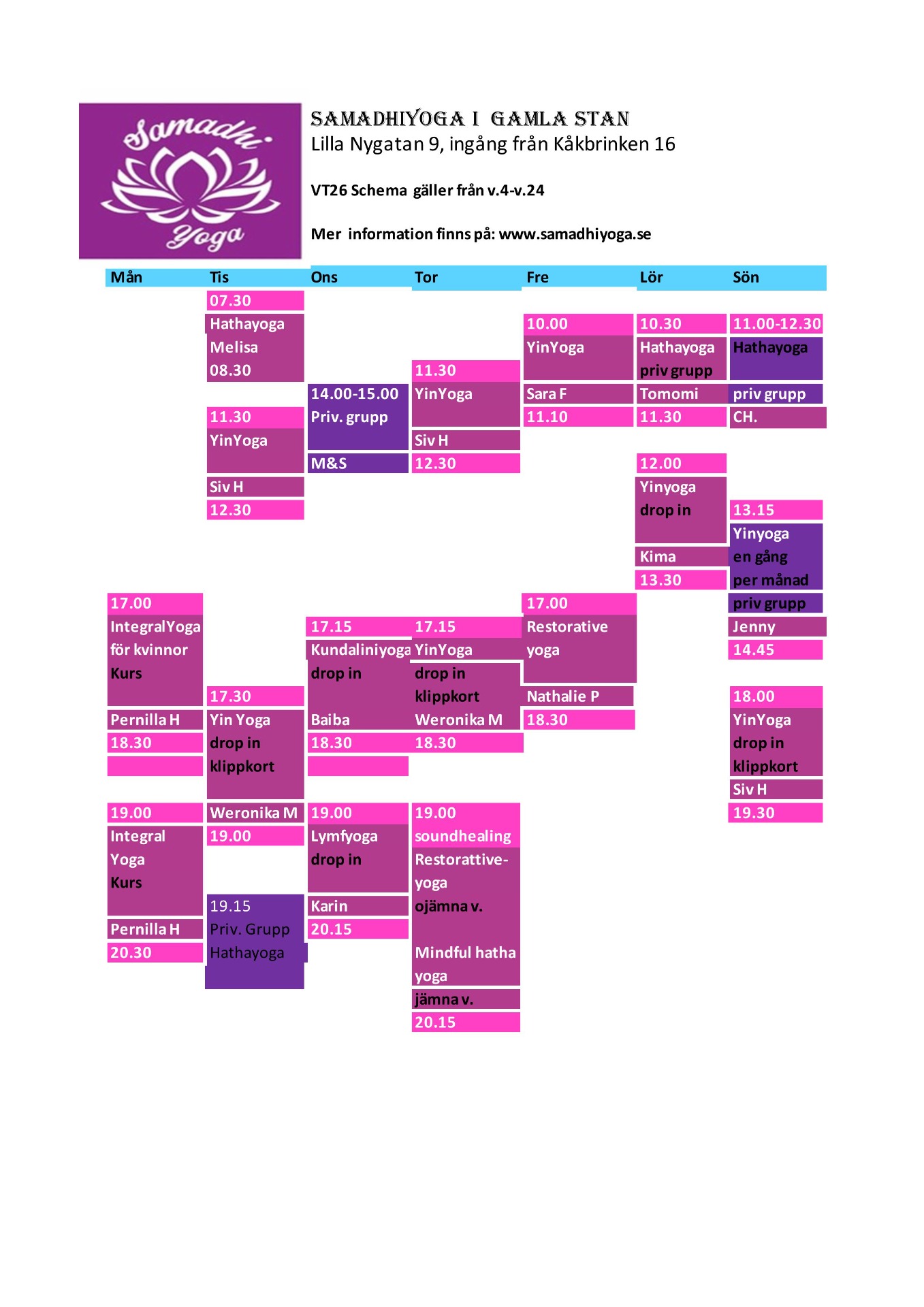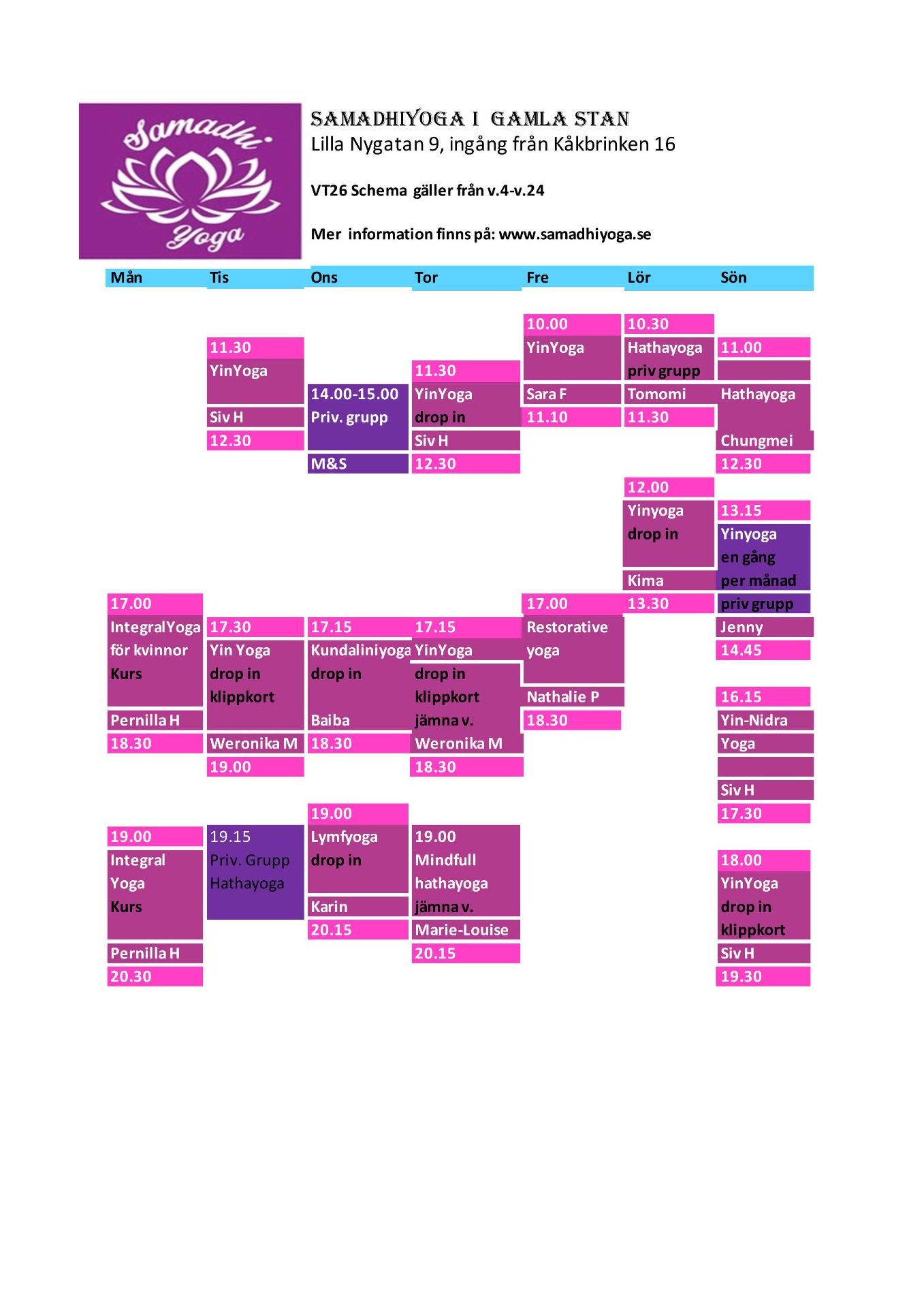 Kontakta direkt lärare angående bokningar, frågor. Under rubriken OmOss hittar du lärare som undervisar på SamadhiYoga i Gamla Stan.